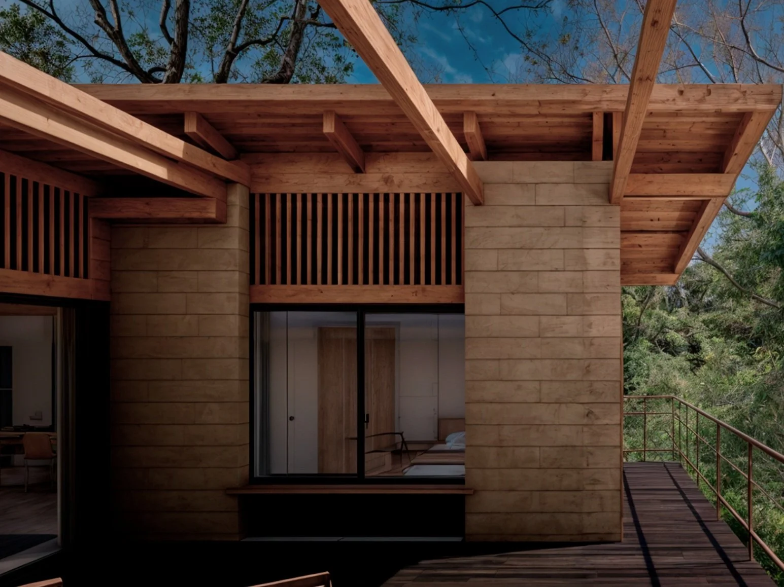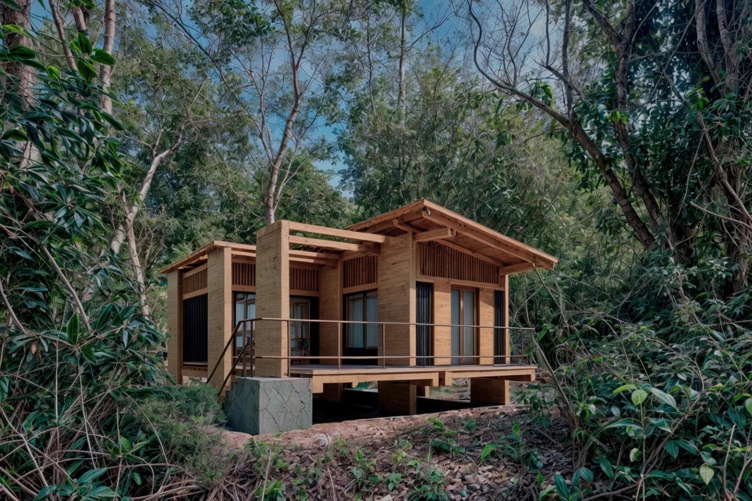 Con esta estrategia de diseño buscamos que la arquitectura sea fácilmente adaptable a las condiciones del terreno, de esta manera hay una mayor flexibilidad para adecuarse a las pendientes naturales, así como evitar afectar los árboles existentes, permitiendo así que cada proyecto sea único.